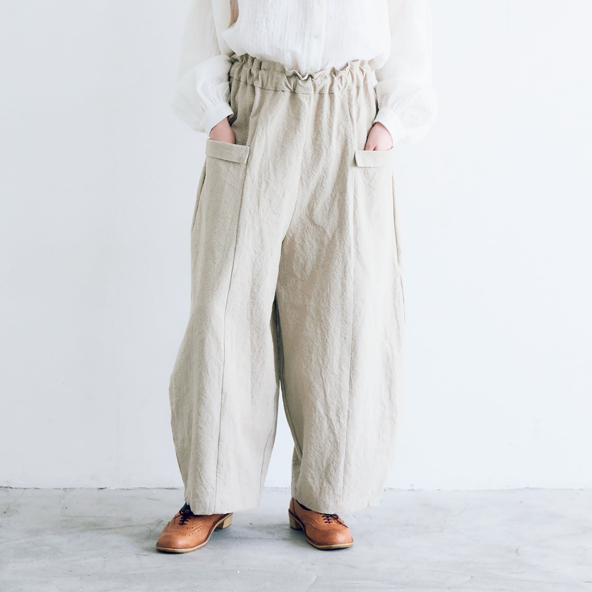 【MAGALI】コットンリネンアンティークキャンバス・フラップパンツ/ナチュラル