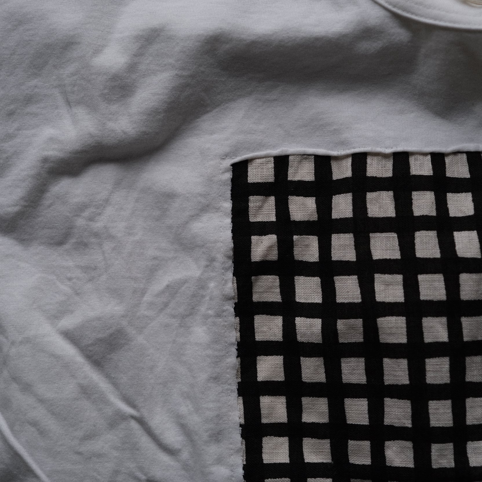【prit】 17/1空紡天竺×10/1ムラ糸プリント 5分袖フレームTシャツ シロ×チェック