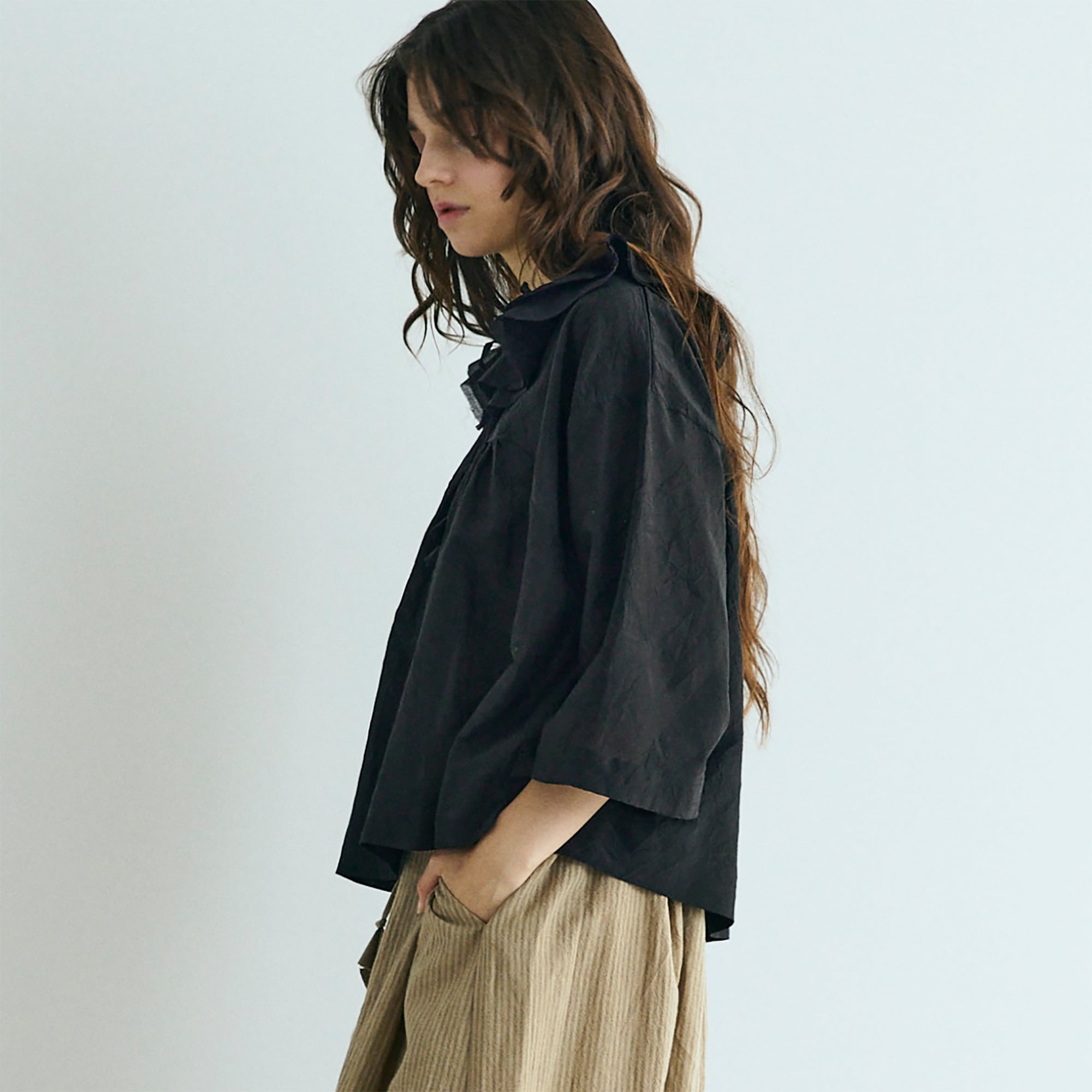 【MAGALI】コットンシルクブレイド・フリルカラーブラウス/ブラック