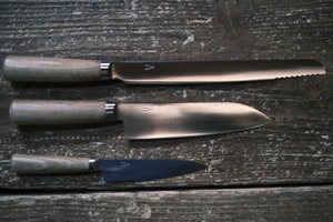 手になじむ木のハンドルと、切れ味がよくさびにくい鋼の刃をもつ庖丁。