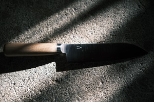 手になじむ木のハンドルと、切れ味がよくさびにくい鋼の刃をもつ庖丁。