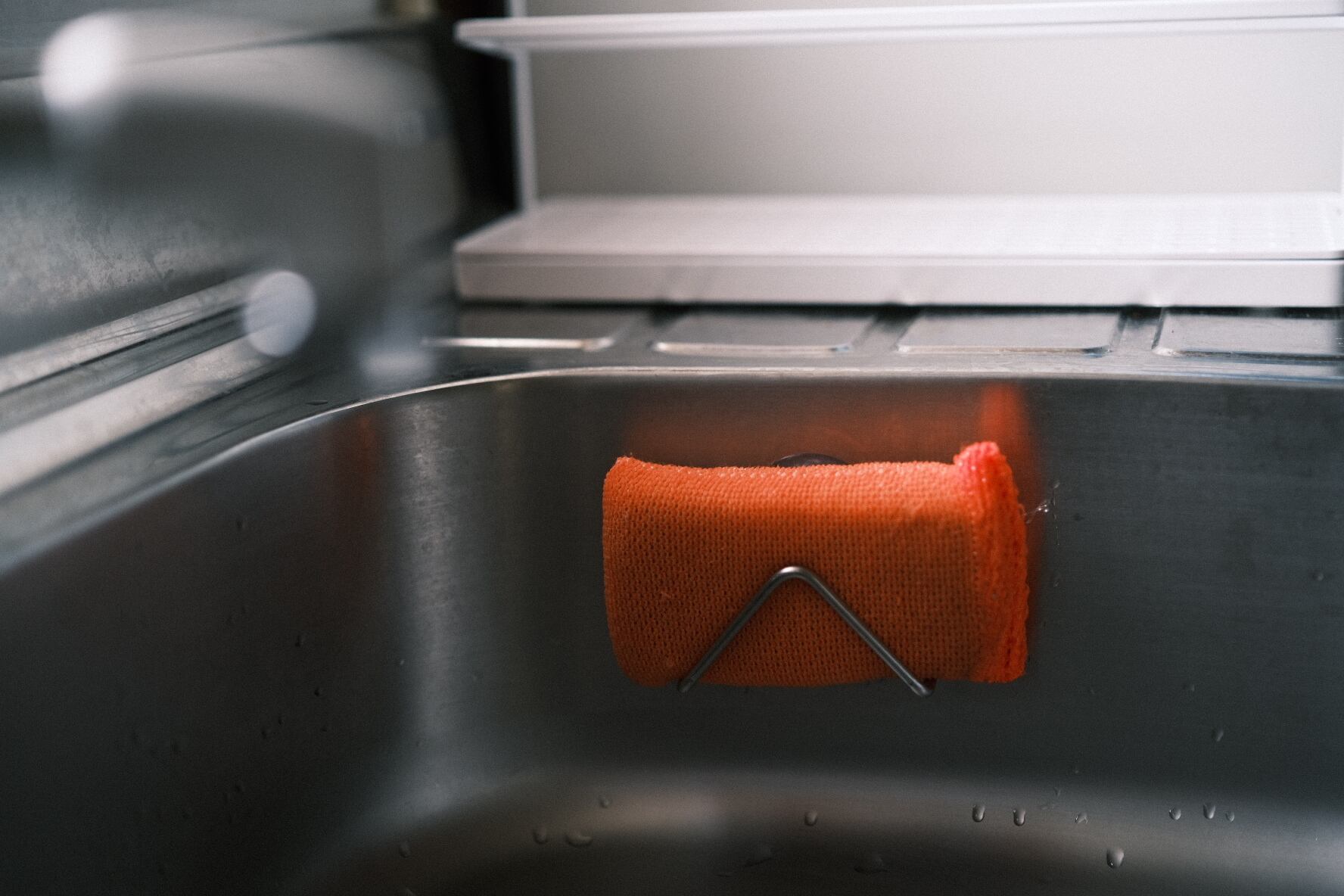 シンク内に取り付けられる吸盤タイプのスポンジ置き。